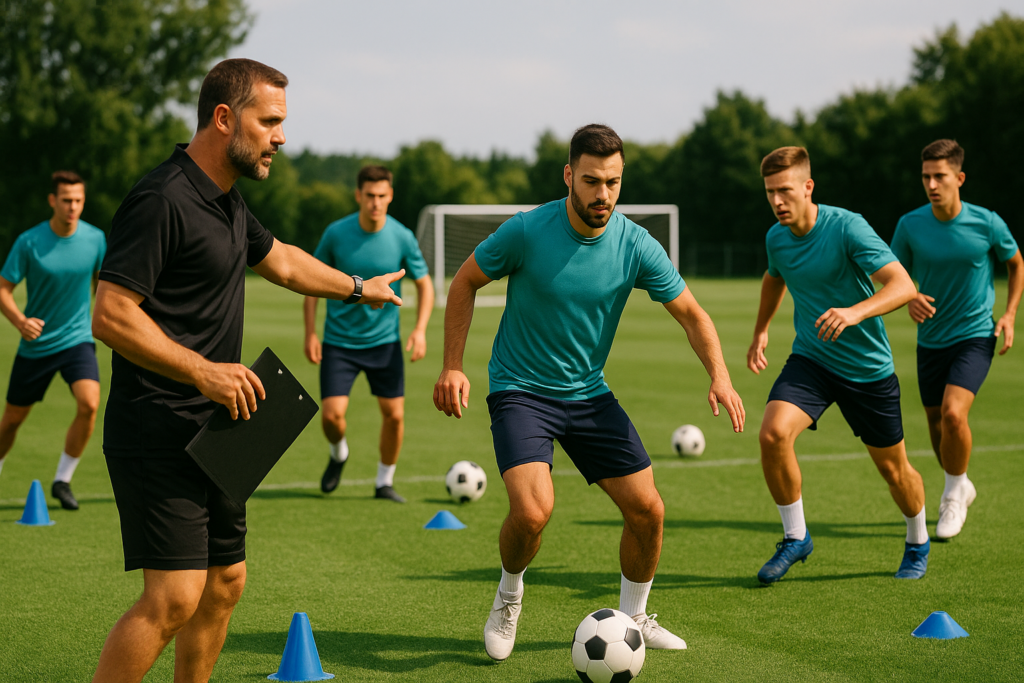 Players spend time working on 4 aspects: positioning, pressing, passing patterns, and defensive organization. These sessions help new signings understand the team’s system and allow existing players to adapt to any tactical changes. Video analysis is also commonly used to review training sessions and friendly matches.